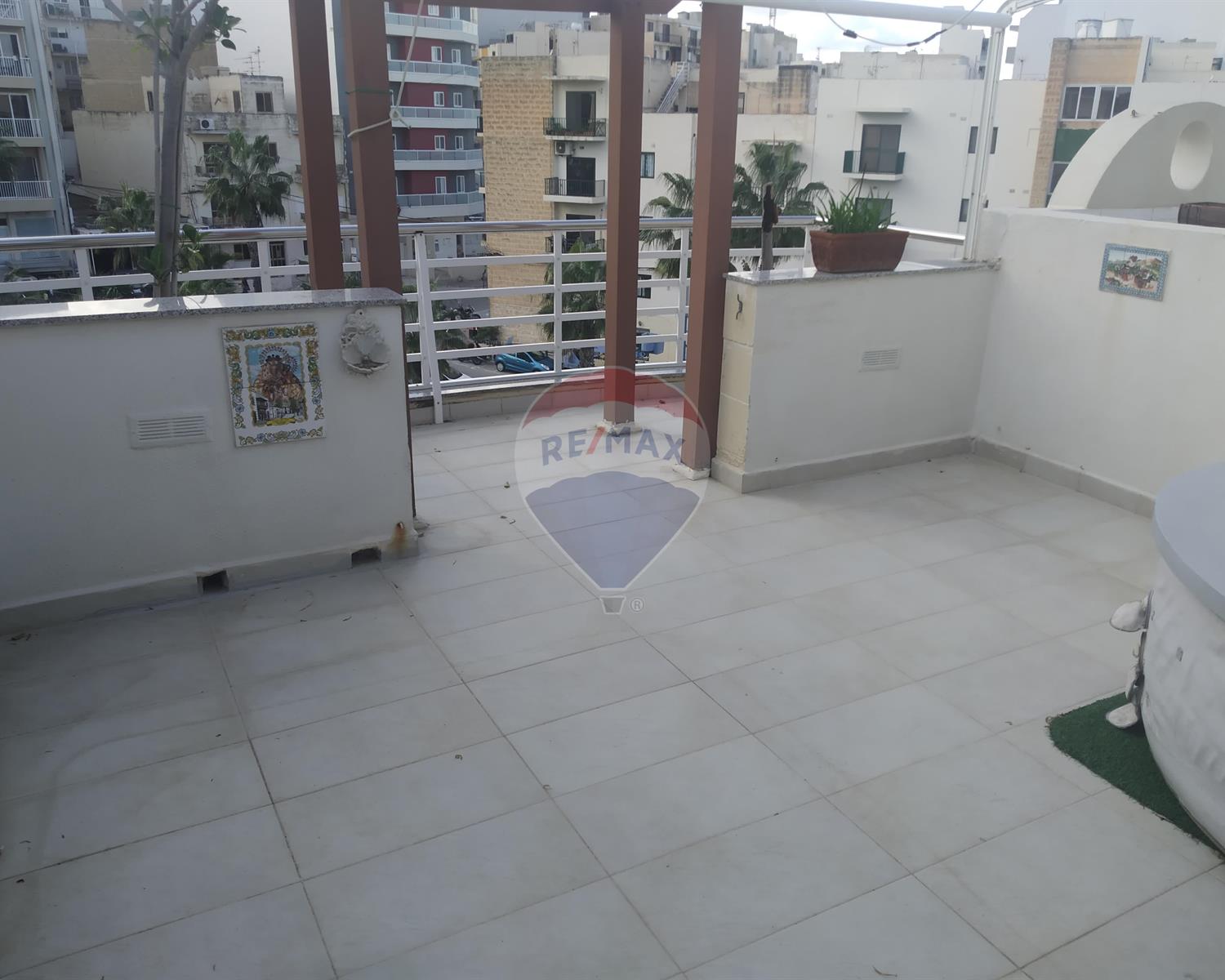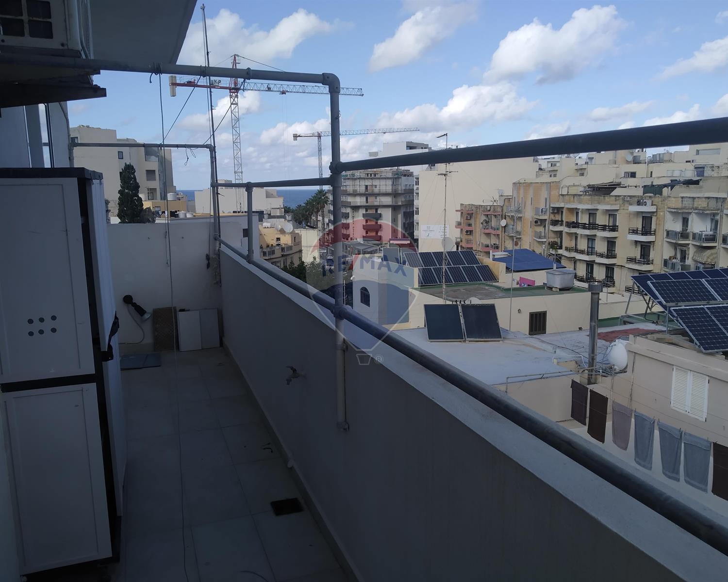 BUGIBBA – Centrally located penthouse forming part of a small block of only three units. Comprising a spacious open plan kitchen / living / dining leading out to a terrace, three bedrooms, bathroom, en suite shower and a large back balcony. This airy home is being offered furnished, including air-conditioners, washing machine, ceiling fans, etc.