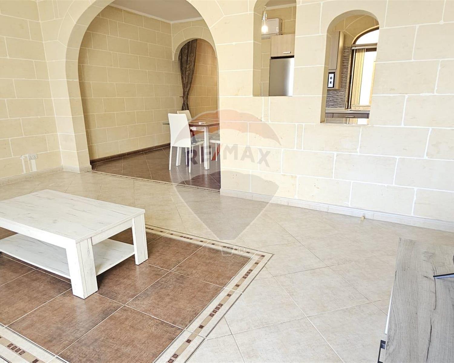 XAGHRA: Located just minutes away from the lively village square is this larger than usual 1st floor APARTMENT. This well-kept property is in a small block of only 4 units. Layout consists of a separate kitchen/dinette and a good sized living room, which overlooks a front balcony, two double furnished bedrooms, one having en-suite shower facilities, a main guest bathroom with a bath-tub and a third unfurnished room which can be easily converted into an office. There are two internal court yards and a back sunny courtyard. The premises enjoys natural light. Optional street level garage at an extra charge.