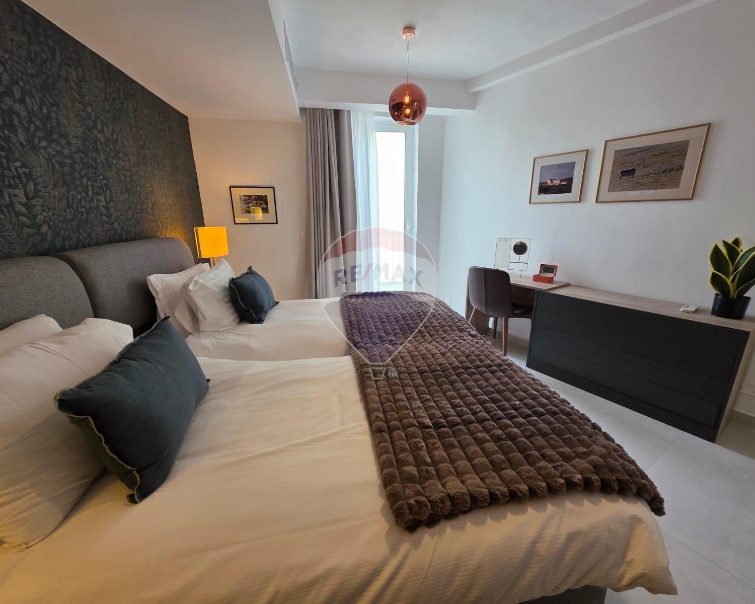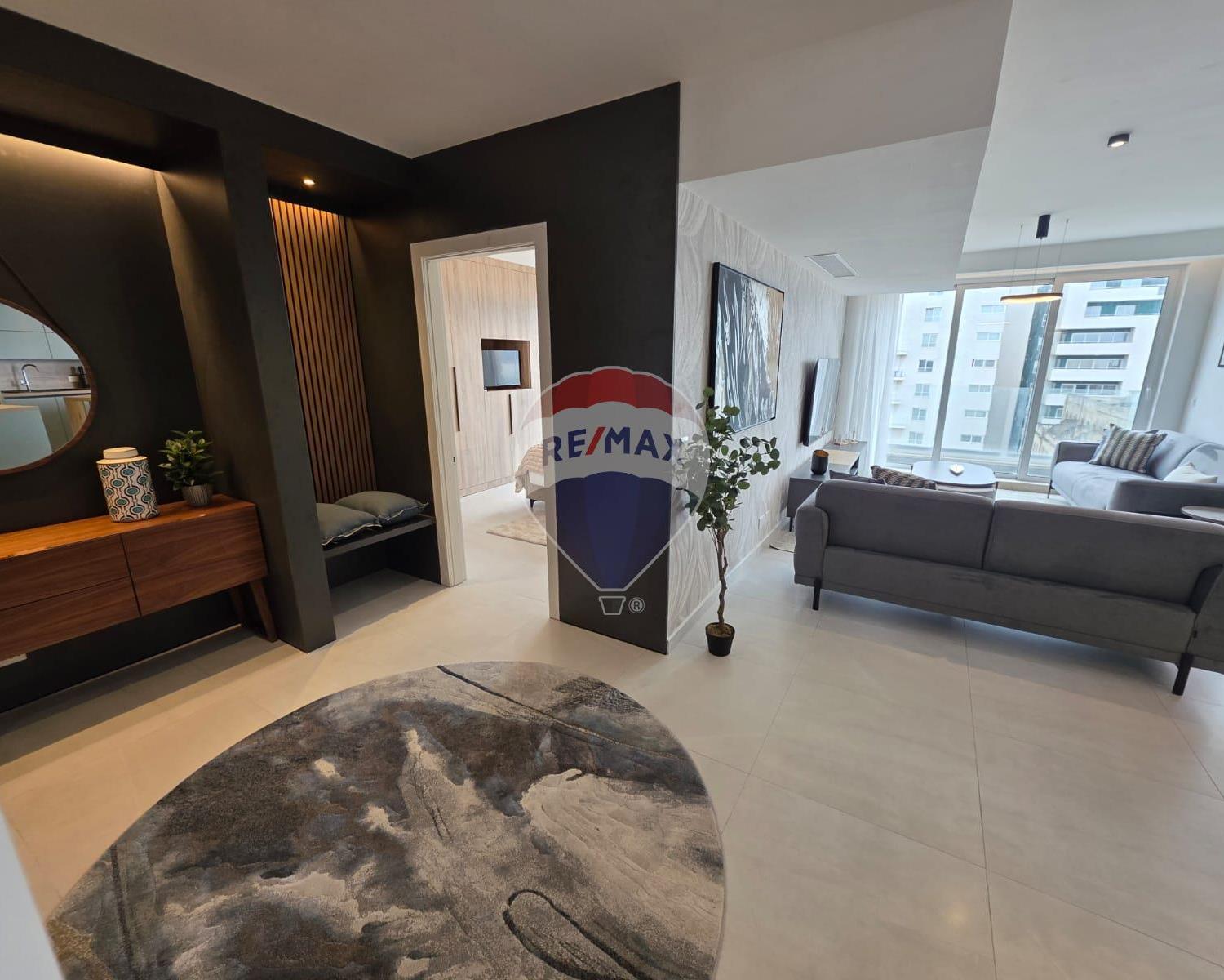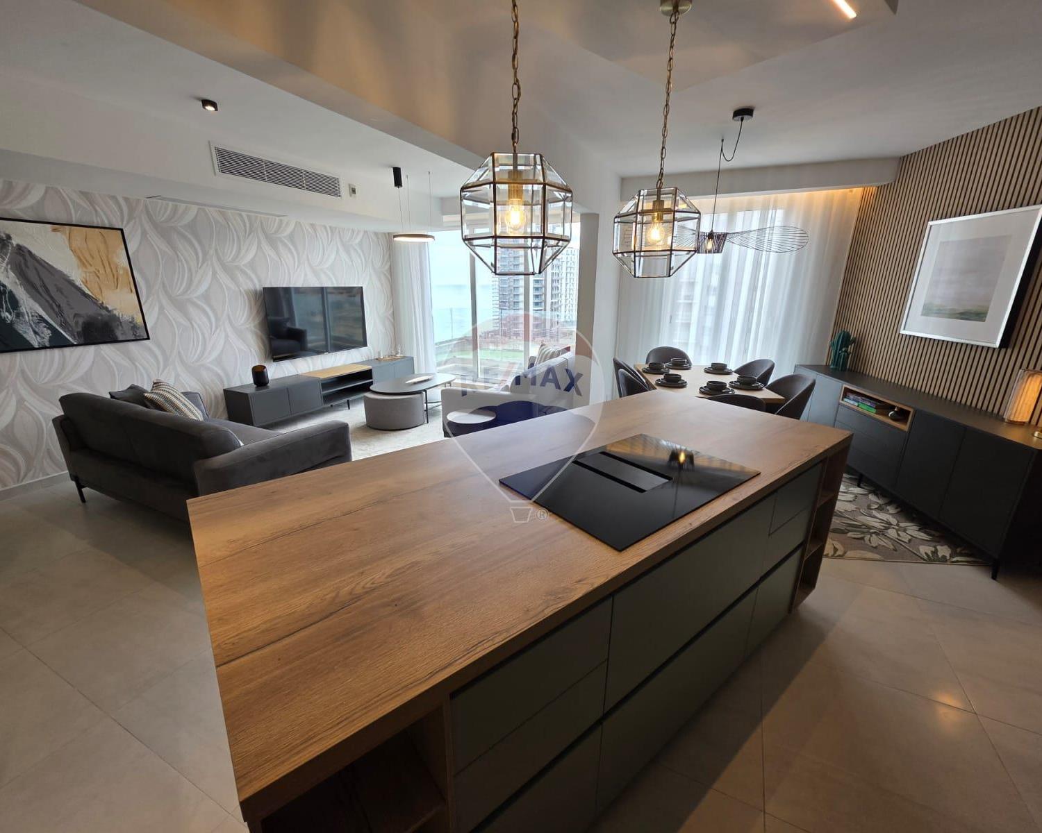 Sliema - Designer finished 3 bedroom apartment, situated close to Tigne Point, many shops, restaurants, promenade and other amenities. Enjoying a spacious layout and plenty of natural light throughout, this stylish property comprises of an open plan kitchen/living/dining area leading onto a balcony where one can enjoy Seaview, very spacious bedrooms (main with en-suite shower), main bathroom and a laundry room. Finished to very high standards, this property is fully furnished and equipped, including air conditioning throughout. This property would make a lovely home, viewings are highly recommended.