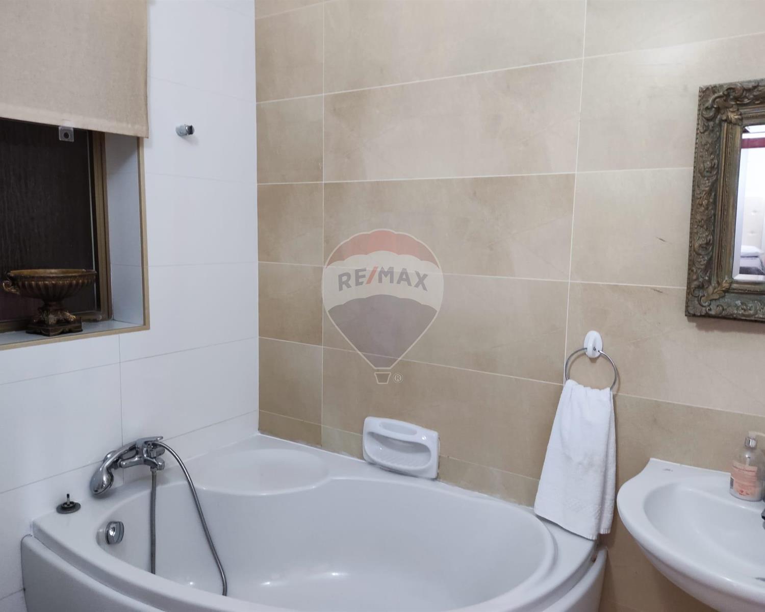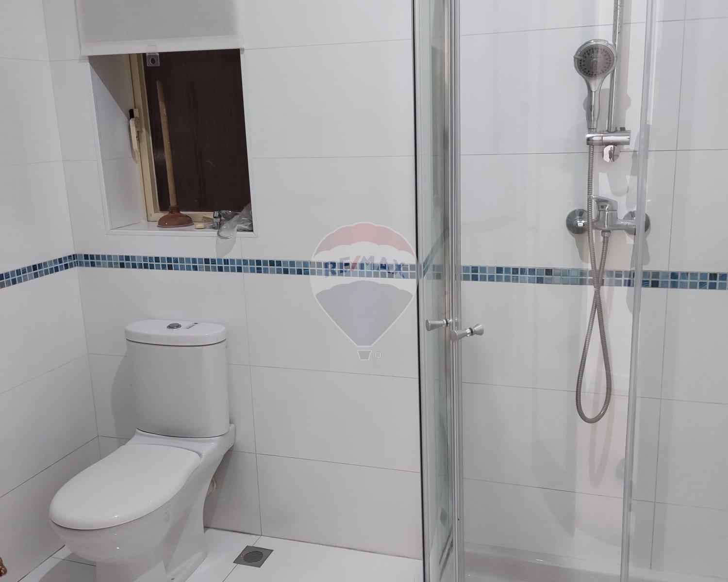 The property contains a master bedroom with en-suite walk-in shower and a second large bedroom (with balcony), the third one could be a kid's bedroom. The main bathroom is equipped with a toilet and a bath tub.