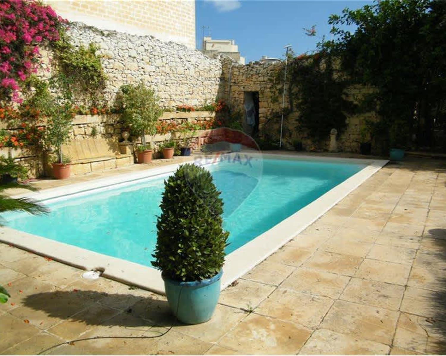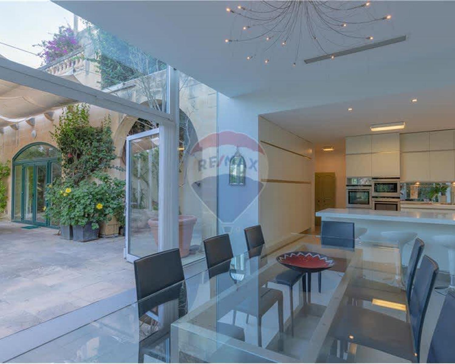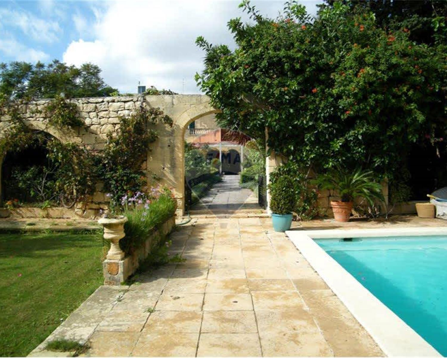 ZEJTUN – Exceptional and distinctive Palazzo located on the outskirts of this picturesque town, boasting approximately 1450 sqm of well-maintained private garden with a pool area. Property offers rich historical features, as well as marble and solid hardwood floors, original wooden beams, Maltese balcony, and high-quality building materials. In all there is more than 400 sqm of living space including a welcoming arched entrance hall with lateral rooms, a large living area with wood fireplace, a formal dining room, library, study, a most lavish kitchen extending onto the courtyard through a glass conservatory while enjoying the view of the beautiful garden. Upstairs one finds five bedrooms (main with powder room, a massive walk-in wardrobe and spacious en-suite), a large terrace and multiple guest rest rooms. The Palazzo has very generous proportions, is very energy efficient, equipped with solar panels, roof insulation, five wells and underfloor heating. This is a versatile one-of-a-kind residence, a must view for country home lovers or those who are looking for a B&B or retreat house opportunity.