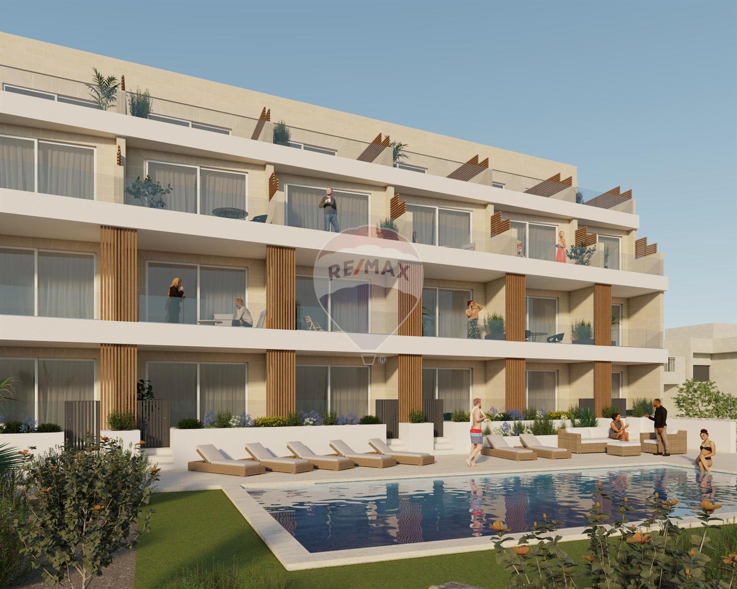 GHAJNSIELEM - Part of newly launched block of apartments with a communal pool located in the heart of the charming village of Ghajnsielem. This development is truly unparalleled in terms of its affordability, size, quality, and design. It comprises of three separate blocks, housing a total of twenty-four luxurious apartments, along with fifteen garages situated beneath the entire complex. This ground floor apartment boasts open views, and upon entering the property you are greeted by a welcoming hall that leads to three spacious double bedrooms and two generously-sized bathrooms, one of which is en-suite. The rear section of this property boasts a grand combined sitting/kitchen/dining room that opens up to a spacious balcony terrace, offering panoramic views the lush Mediterranean fields and gardens. This picturesque backdrop sets the stage for a spacious deck area and a large communal pool, creating a serene oasis for residents to enjoy.