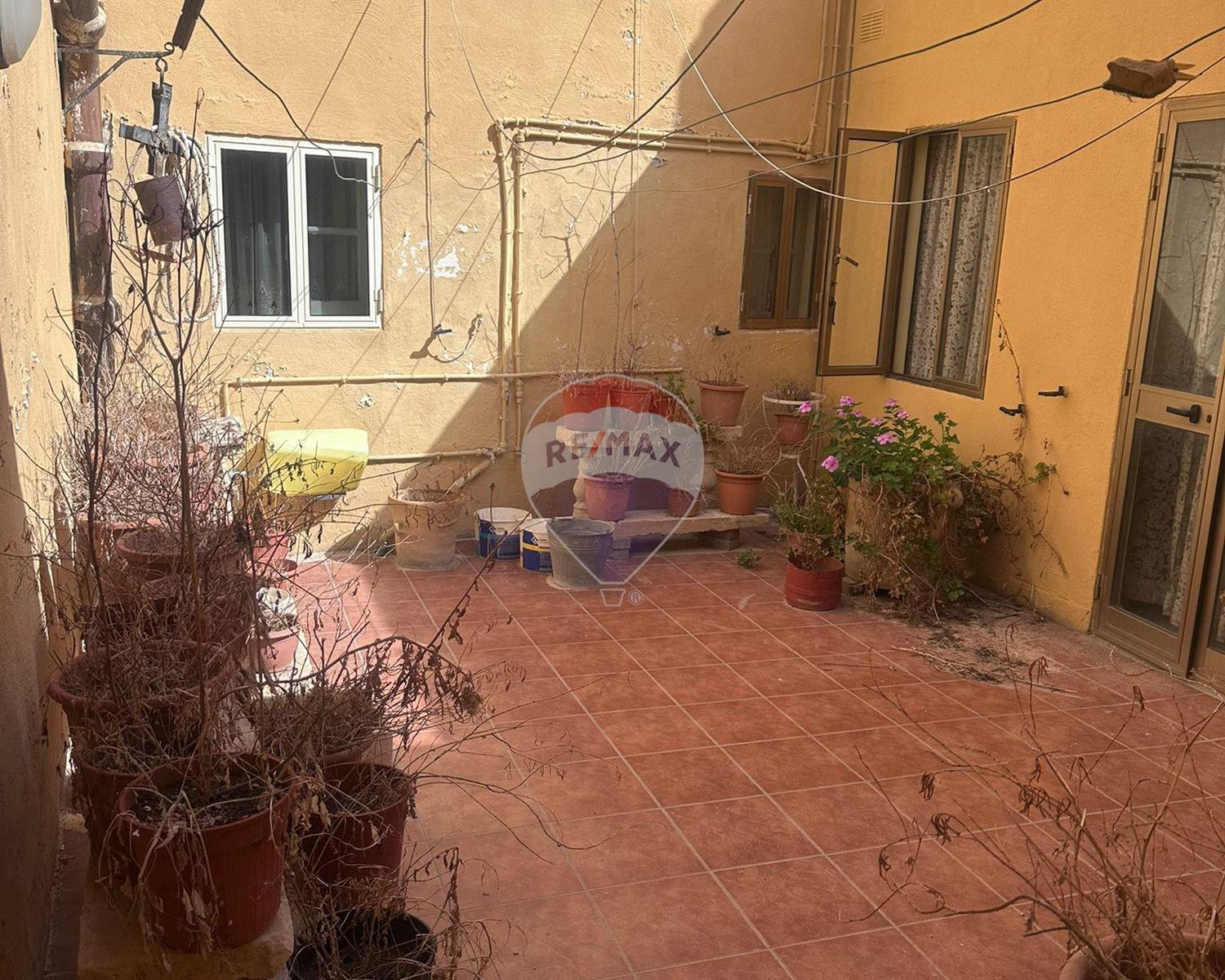 The current layout consists of a good-sized entrance, a dining room (currently used as a bedroom), a bathroom, and a large kitchen with a high ceiling, all centred around a bright courtyard that fills the home with natural light. A washroom and remissa complete the ground floor. On the upper level, a landing leads to two bedrooms.