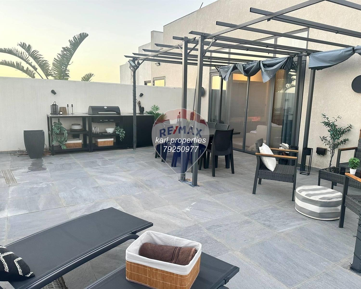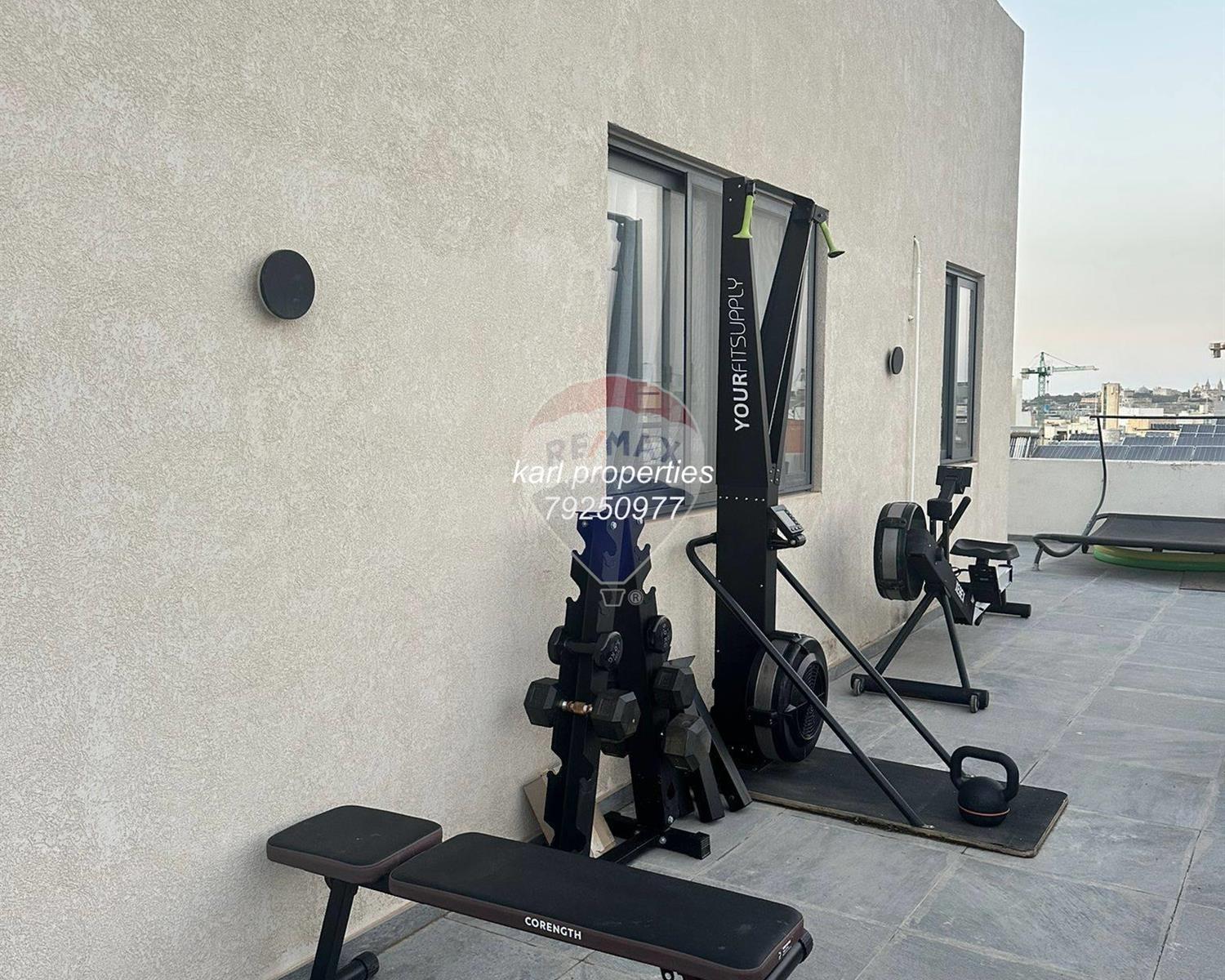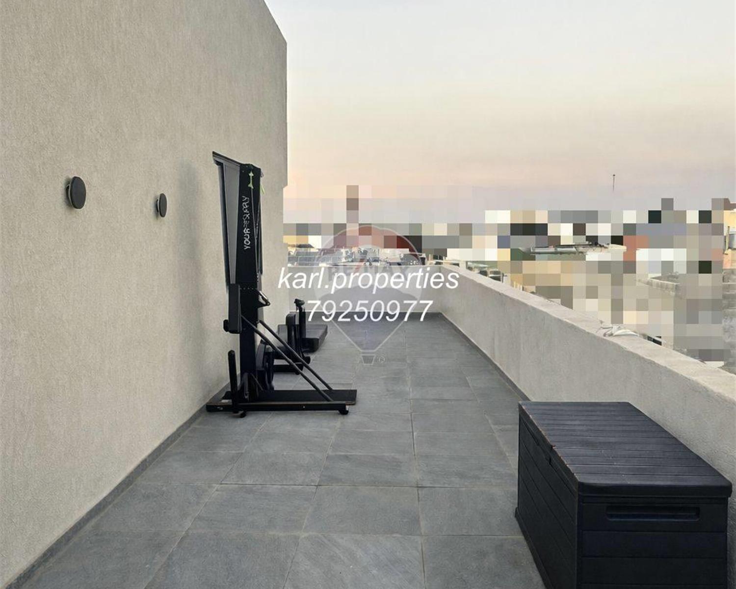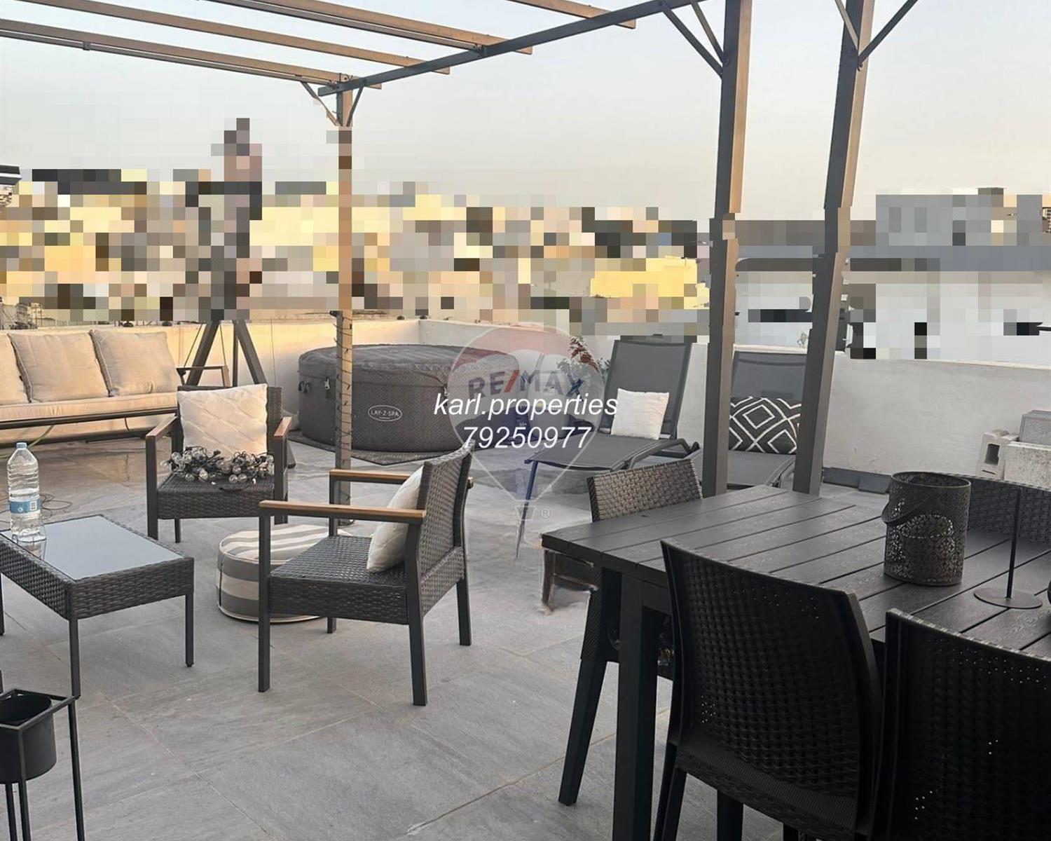 Modern corner penthouse located in a central area of the town, set within a newly built block. Features an open-plan Kitchen/Living/Dining area leading onto a spacious 130 SQM corner Terrace including Jacuzzi, ideal for relaxing or entertaining, 2 Double Bedrooms (main with En-suite and Wardrobe), Bathroom, Box room.Being sold Fully Furnished, Freehold, Fully Air-Conditioned, and served with a Lift from the ground floor, Includes full Roof and Airspace, Optional interconnected 1-car street-level Garage available for €55,000