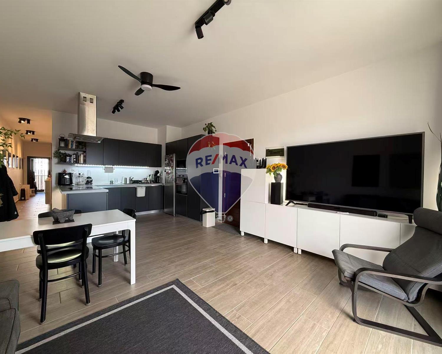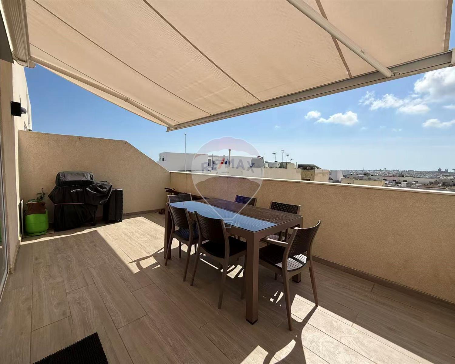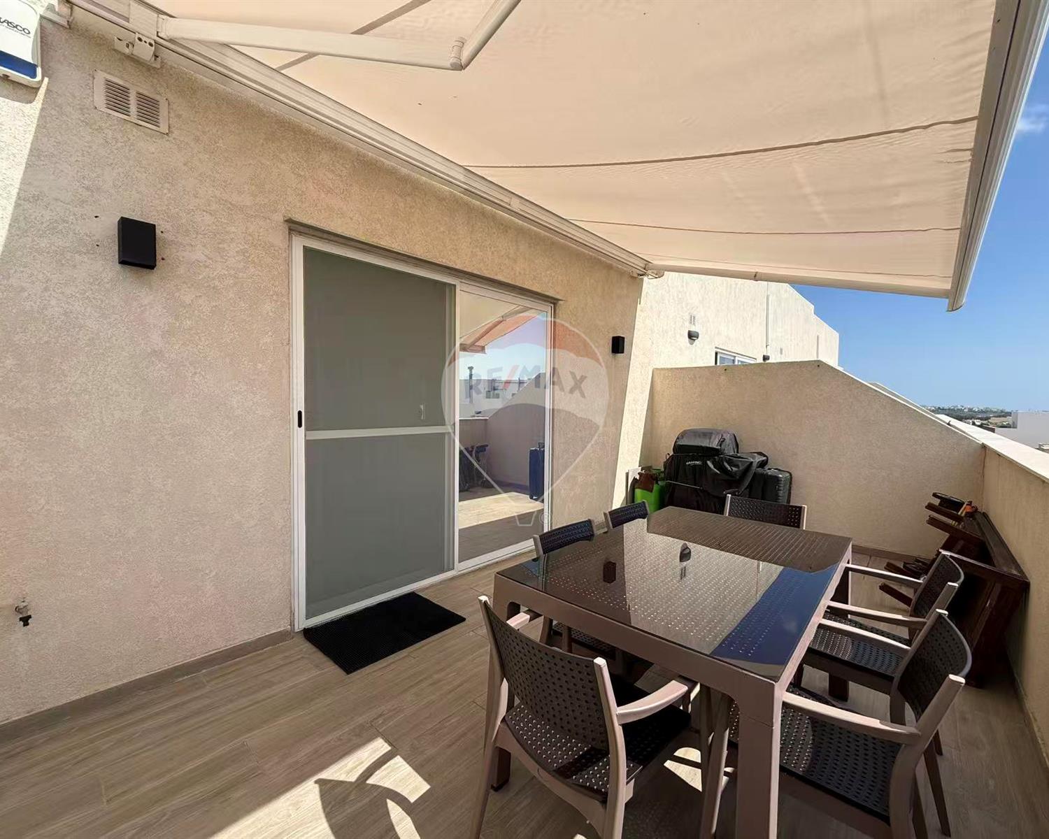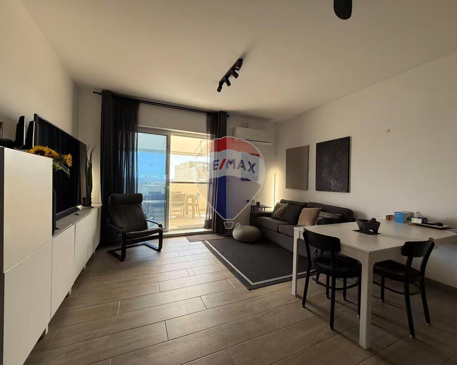 living and dining area that opens onto a generous private terrace. The penthouse comes fully furnished with contemporary