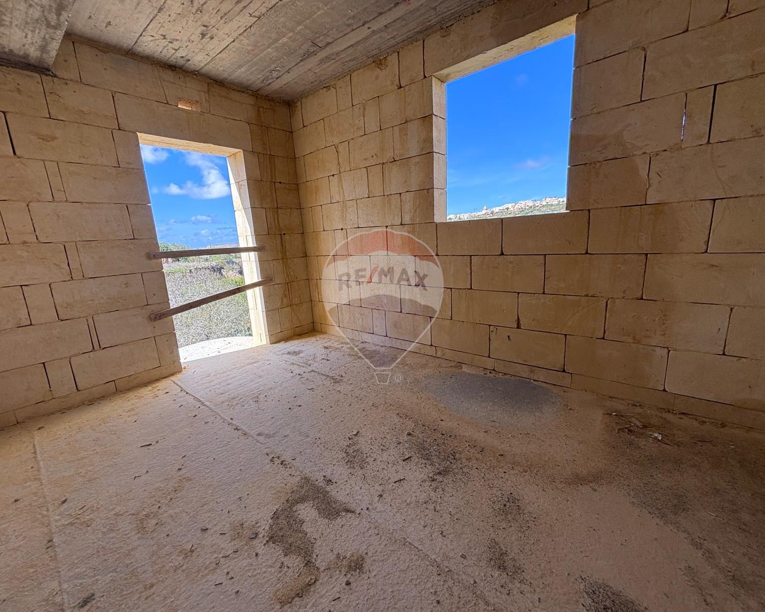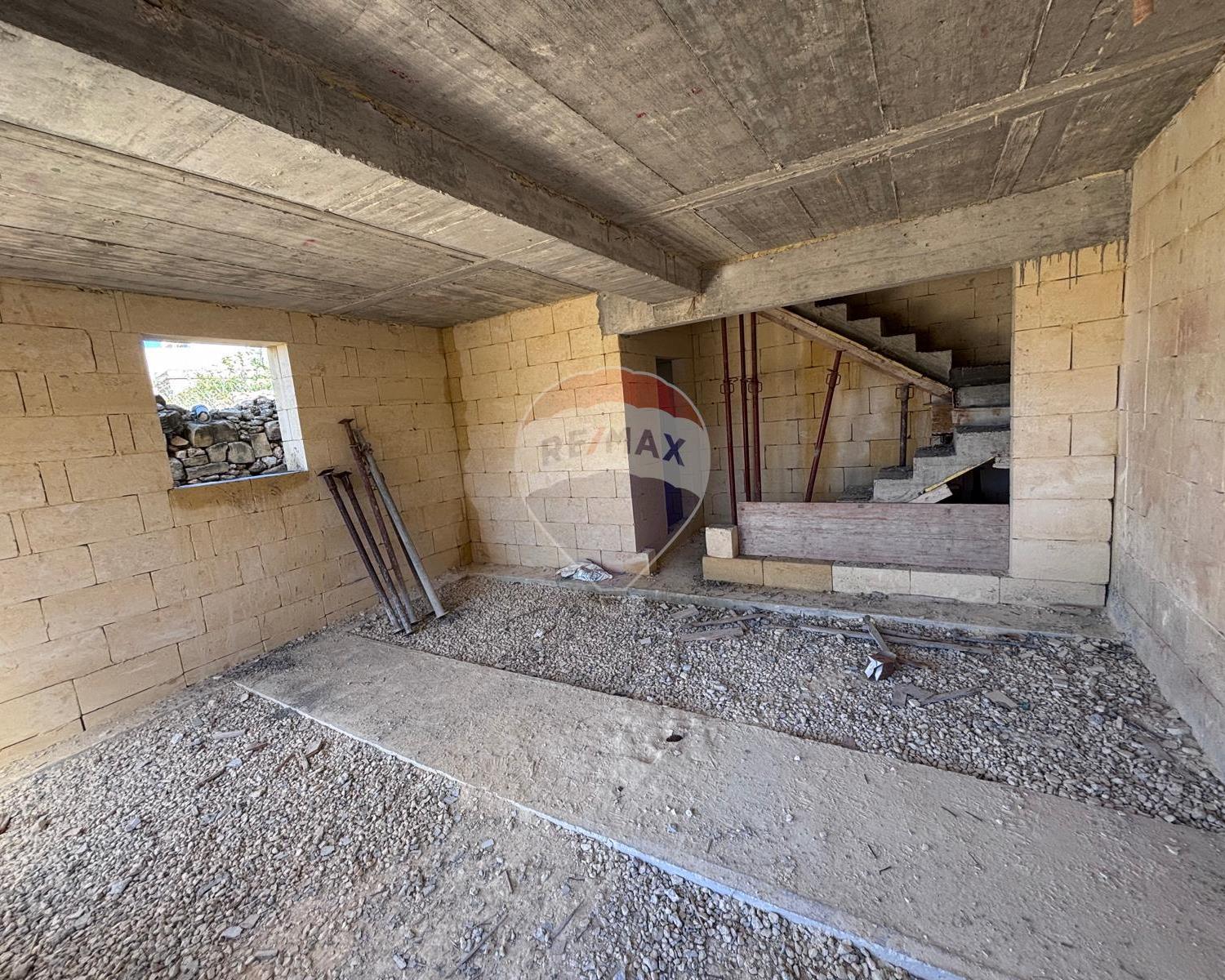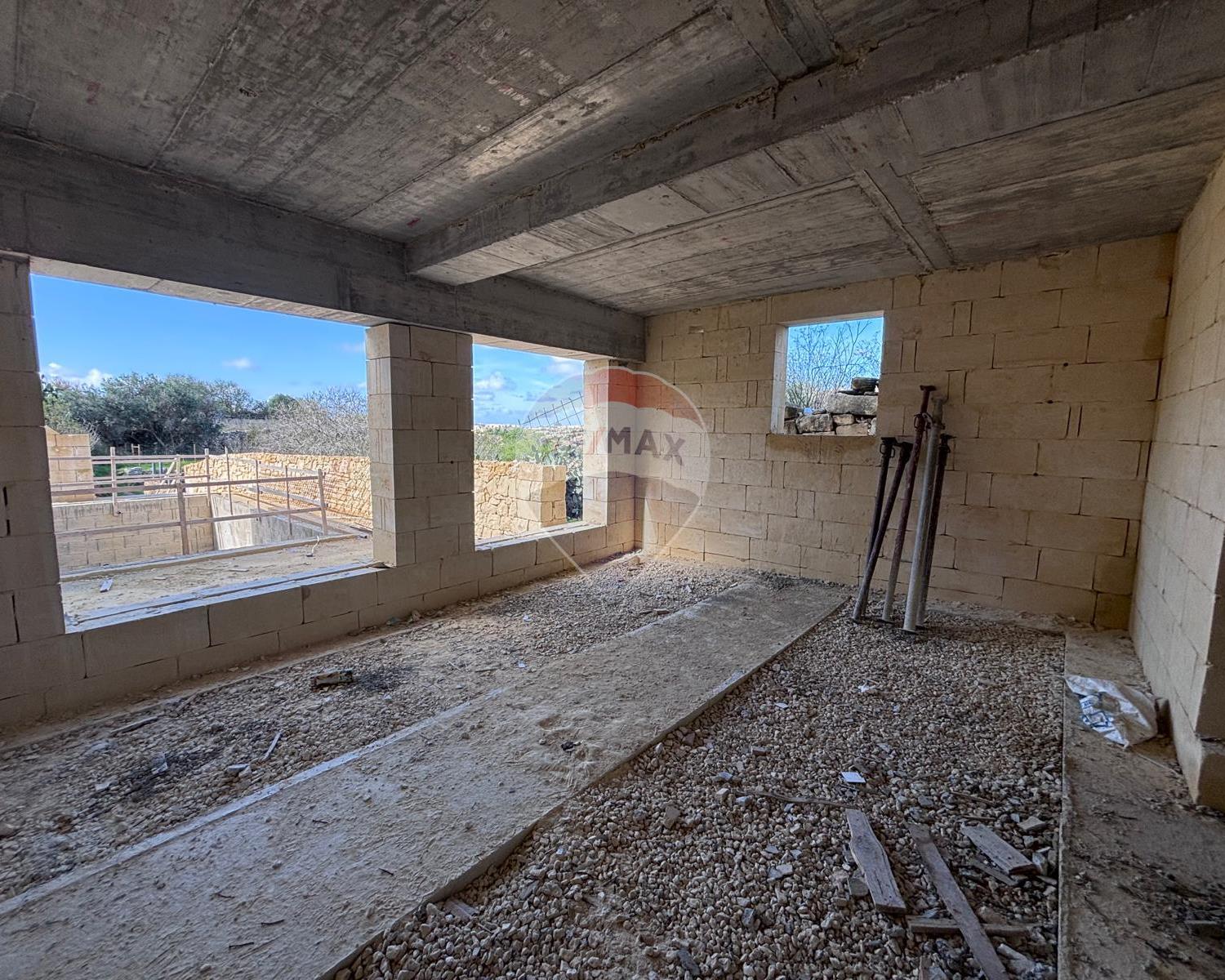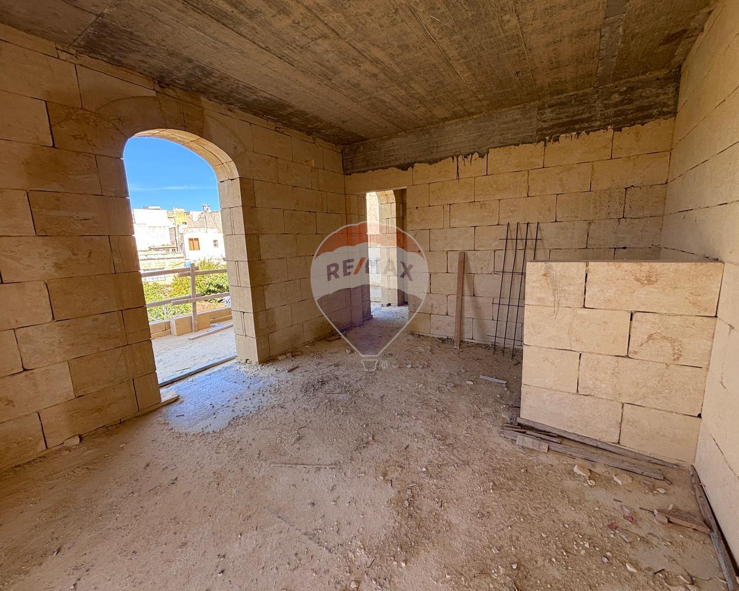 Qala - Situated in a quiet area of this charming village is this house, already built and offered in shell form. The layout features an entrance leading to a combined kitchen, dining, and living area that opens onto the pool and garden, enjoying picturesque views. On this level, there is also a bathroom. The ground floor consists of two double bedrooms, both with balconies overlooking the pool, and a main bathroom. The top floor offers another bedroom with an en-suite and a well-sized terrace. An internal staircase leads to the rooftop.