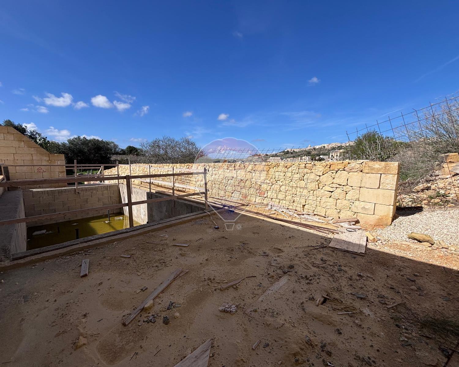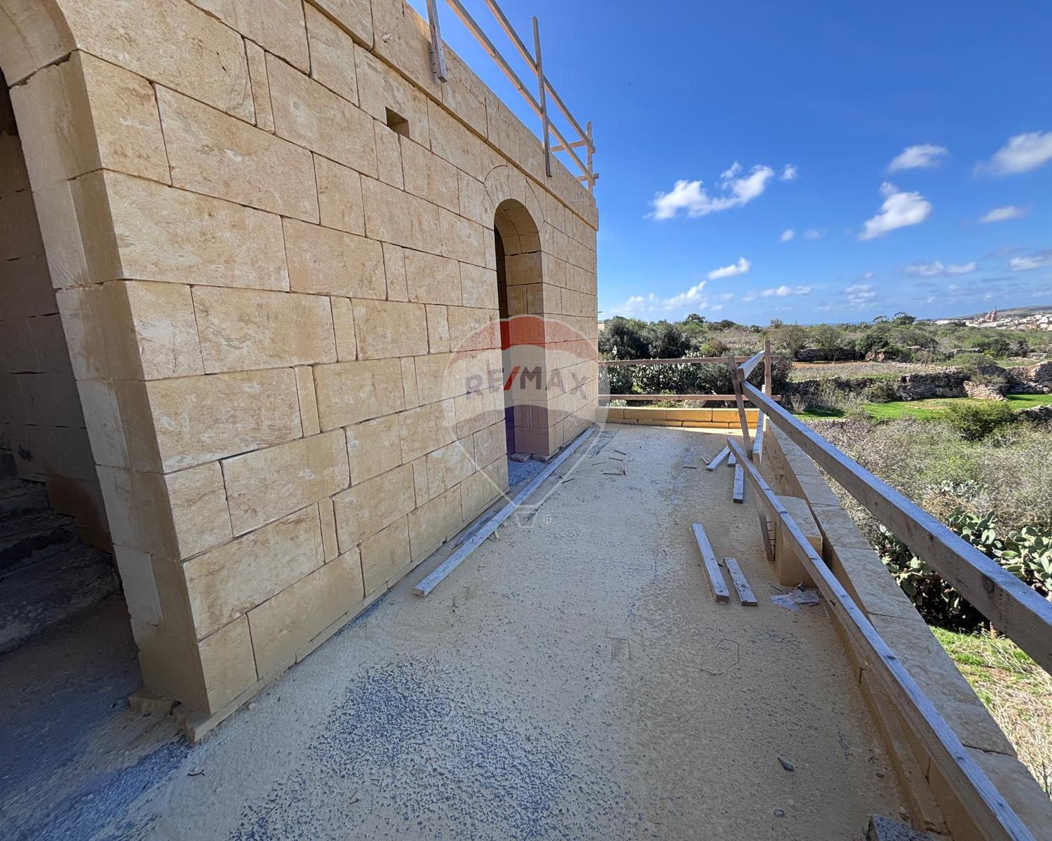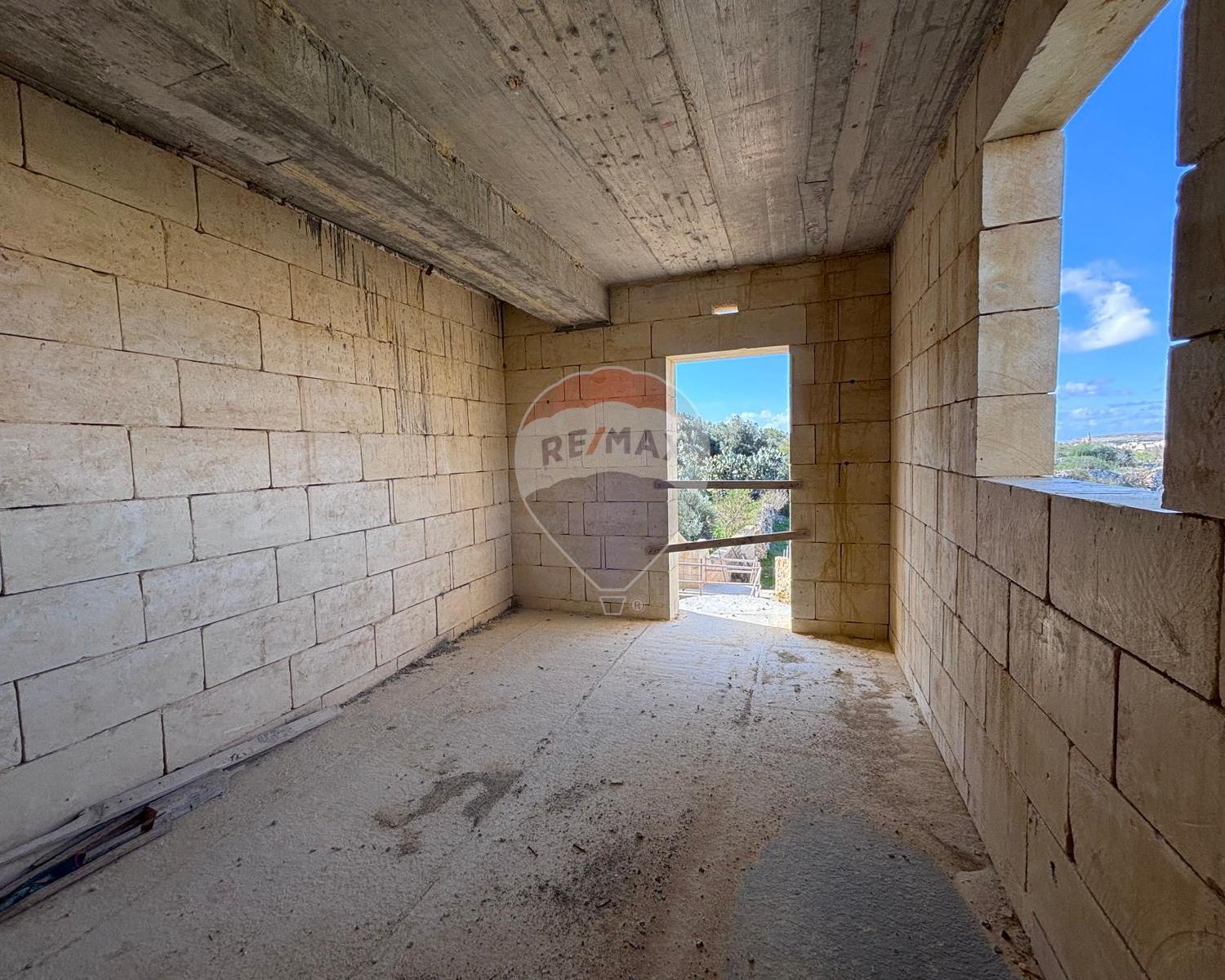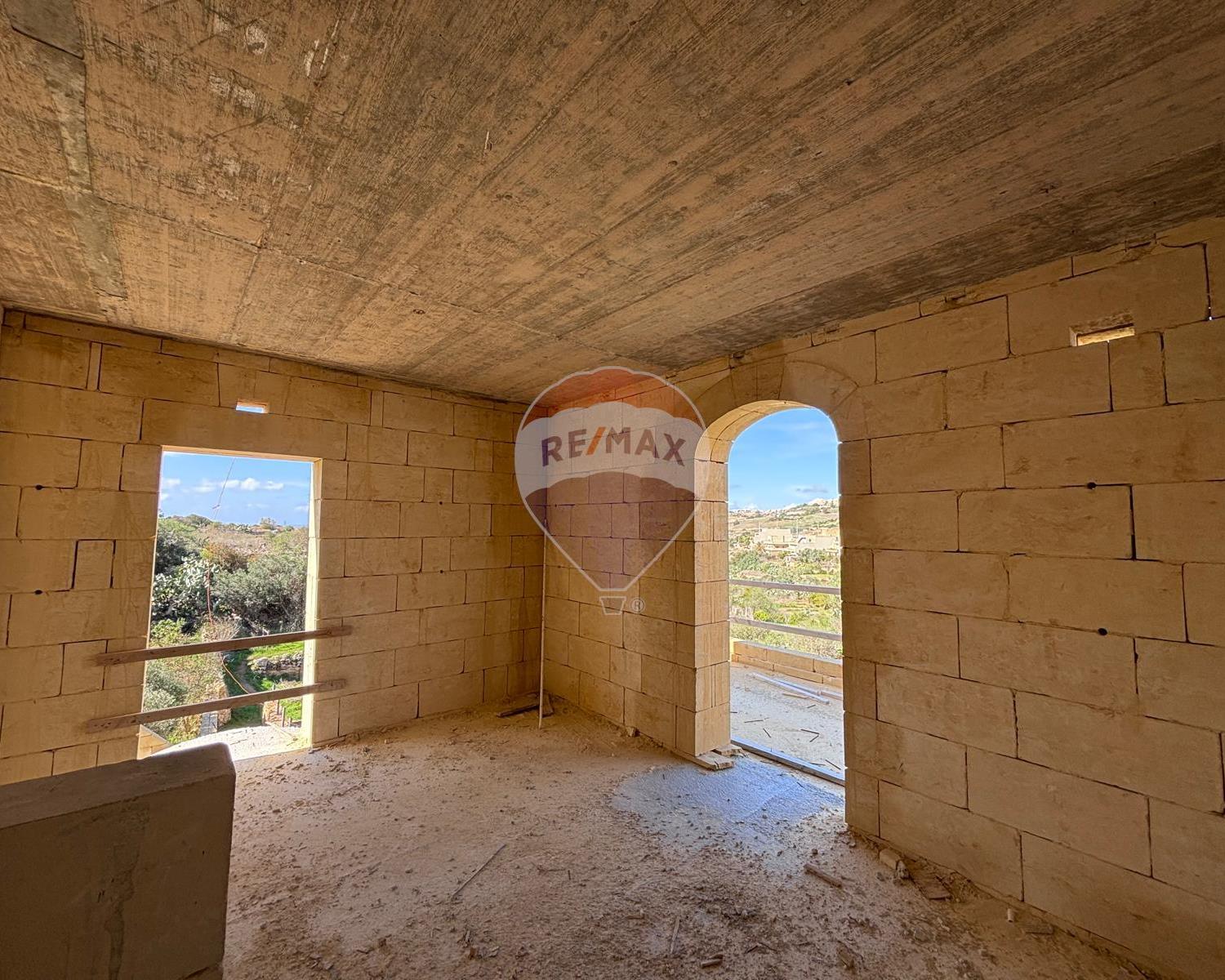 Qala - Situated in a quiet area of this charming village is this house, already built and offered in shell form. The layout features an entrance leading to a combined kitchen, dining, and living area that opens onto the pool and garden, enjoying picturesque views. On this level, there is also a bathroom. The ground floor consists of two double bedrooms, both with balconies overlooking the pool, and a main bathroom. The top floor offers another bedroom with an en-suite and a well-sized terrace. An internal staircase leads to the rooftop.